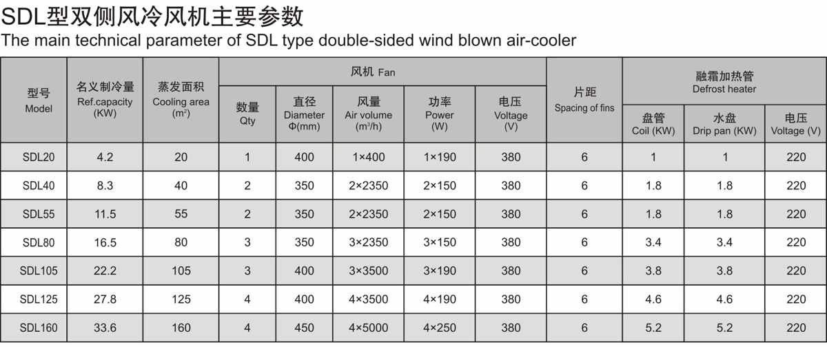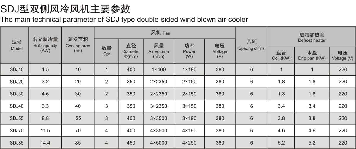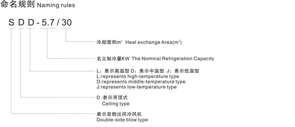 SE series ceiling type double side wind blown air cooler is most suitable for food process workshop,also widely used in supermarket and hotel. They are with reasonable structure,less frosting,low noiseand extures high efficiency heat exchange.
